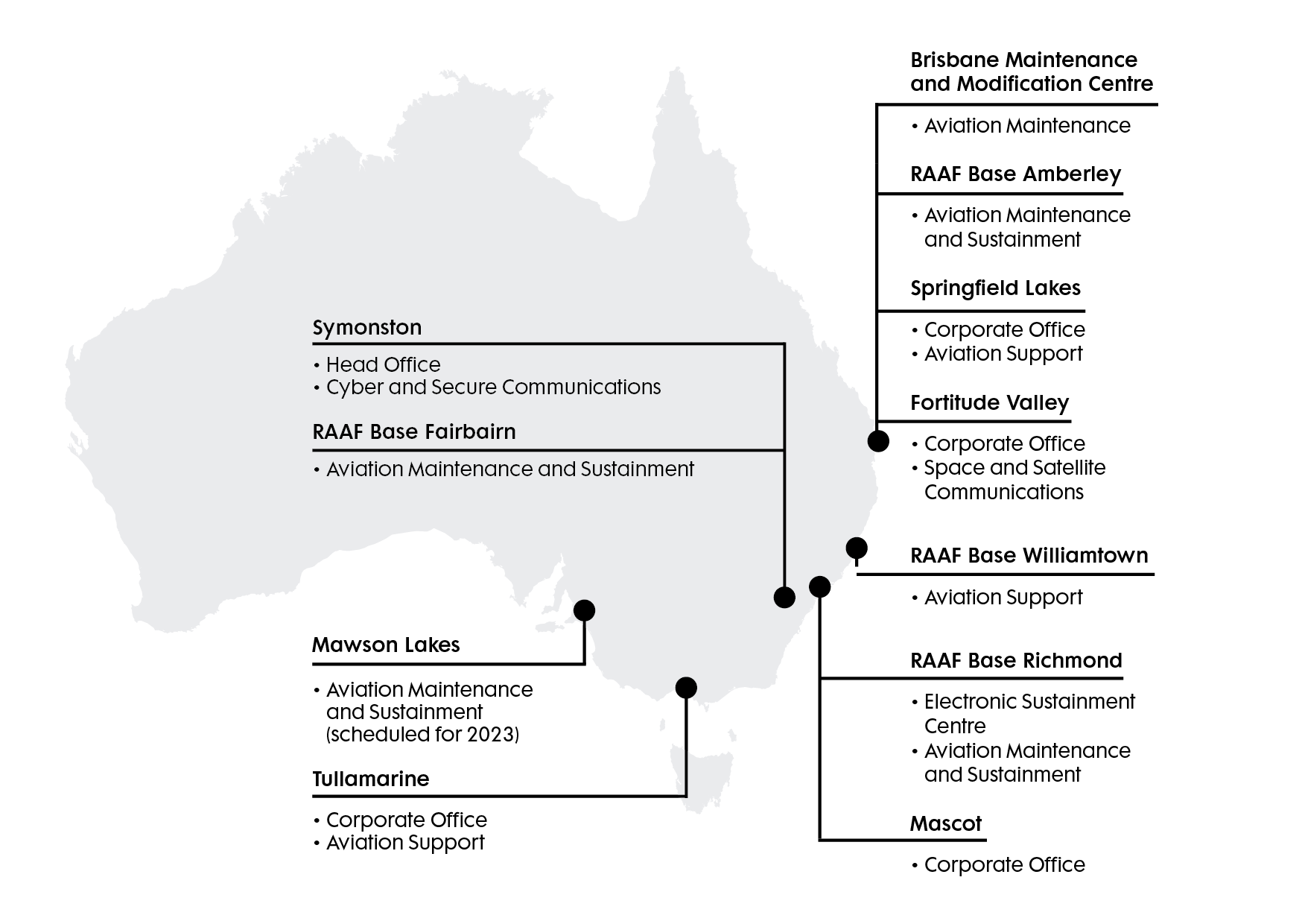 We are an Australian-led company, with a national footprint of more than 800 talented, locally-engaged employees across more than 10 sites, allowing us to leverage our global reach-back to deliver superior Australian defence capability, and define possible for our customers every day.